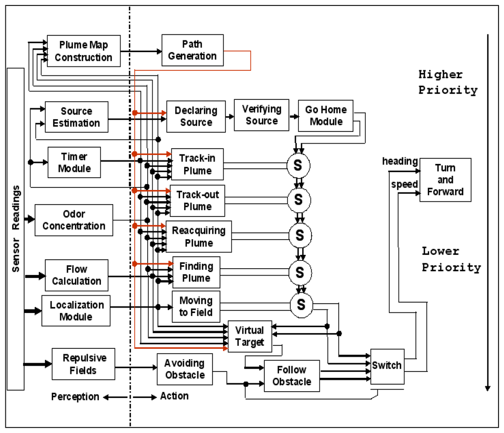 - Li, W.; Carter, D. Subsumption Architecture for Fluid-Advected Chemical Plume Tracing with Soft Obstacle Avoidance. Proceedings of Ocean 2006 Marine Technology and Ocean Science Conference, Boston, MA, USA, 18–21 September 2006; pp. 1–6.