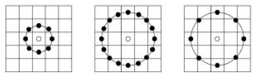 Then the no-argument square region has been replaced by circle region and extended to consider different neighborhood sizes with two parameters R and N shown in Figure 2.