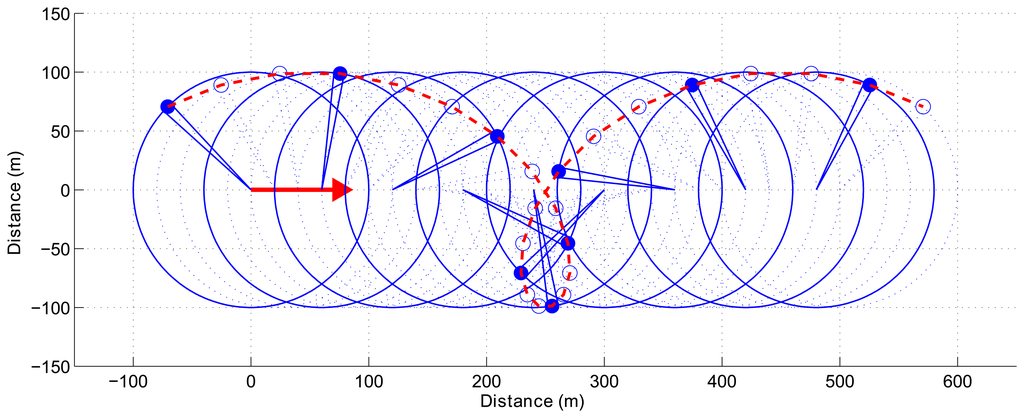 Data distortion results from combined sensor and vehicle movements. In fact, the displacement of the radar beam during an entire revolution of the sensor can be compared to the movement of a bicycle valve for a simple movement in a straight line (cf. Figure 4).