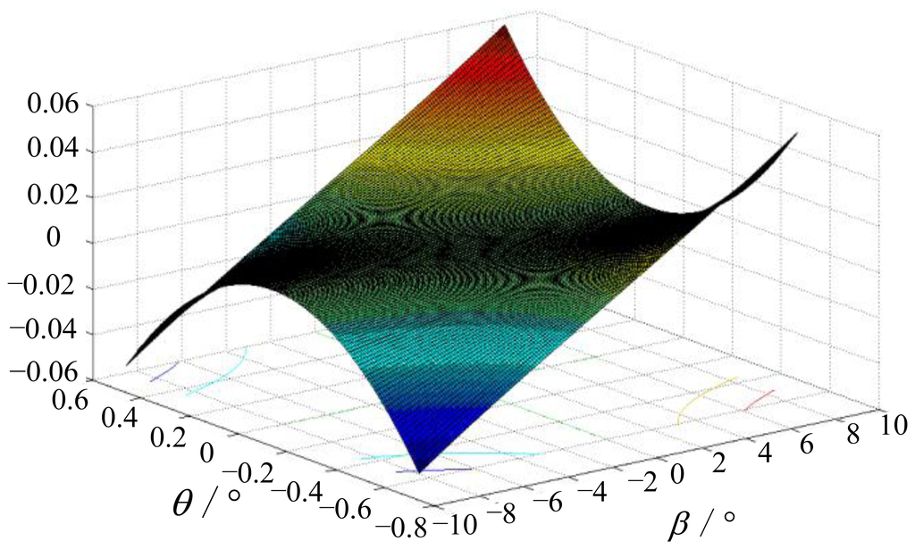 Under the simulation conditions, the effect of the error of inclination image plane on the star tracker accuracy, along with the incident angle is shown in Figure 7.