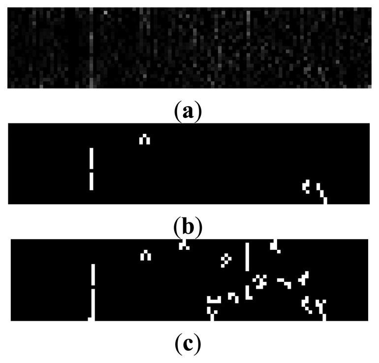 The image captured by CMOS sensor may be degraded by noises which are introduced by circuits or environmental dust. Noise will cause an undesirable result after binarization if median filtering is skipped in the image preprocessing. The binary image without median filtering is shown in Figure 10(c).