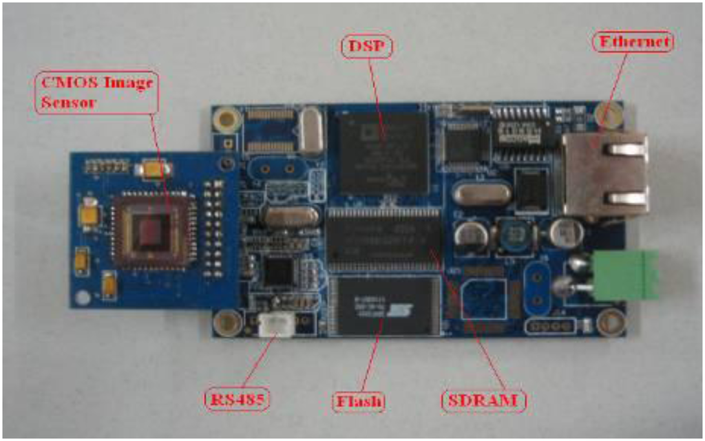 The printed-circuit board of the smart visual sensor is shown in Figure 4.