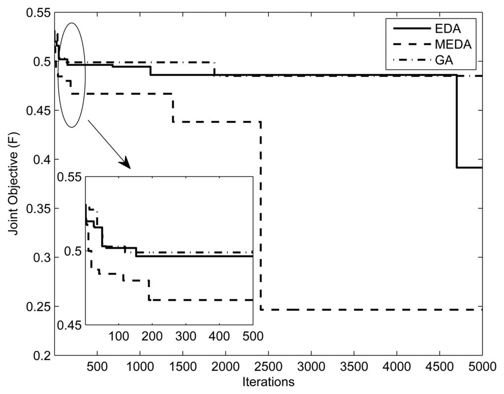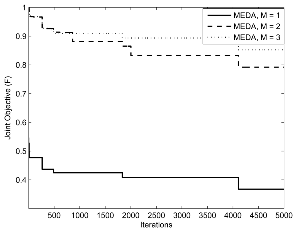 Evolutionary algorithms (EAs) in general have been often used to solve multi-objective optimization problems. EAs are inspired by the theory of biological evolution. The candidate solutions to a multi-objective optimization problem are represented as individuals in the population. In EAs, the objective function value of a candidate solution indicates the fitness of the individual, which is associated with the concept of natural selection []. Unlike other EAs, such as the genetic algorithm (GA), in EDA, the individuals are generated without the crossover and mutation operators. Instead, in EDA, a new population is generated based on a probability distribution, which is estimated from the best-selected individuals of the previous iterations [].