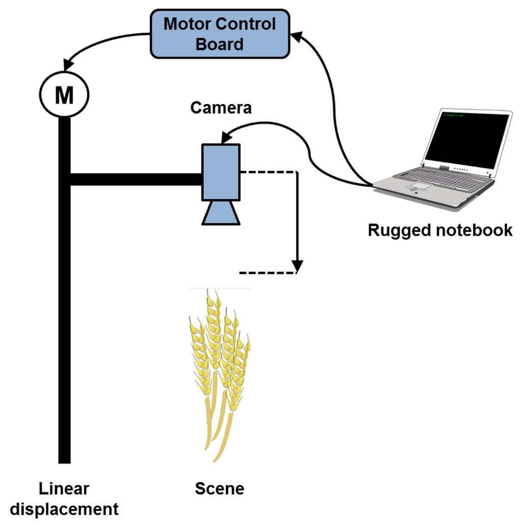 The designed acquisition system is transportable and easy to use in the field. Moreover, this system is not designed to be mounted on an agricultural machine but in an autonomous vehicle dedicated to parameter acquisition in field. Future works will focus on improving the existing system and mainly on the optical part to improve the accuracy by decreasing the depth of field. An important point for any use of this acquisition method is the tradeoff between accuracy and the available field of view, because both are linked and depend on the user's needs or requirements.