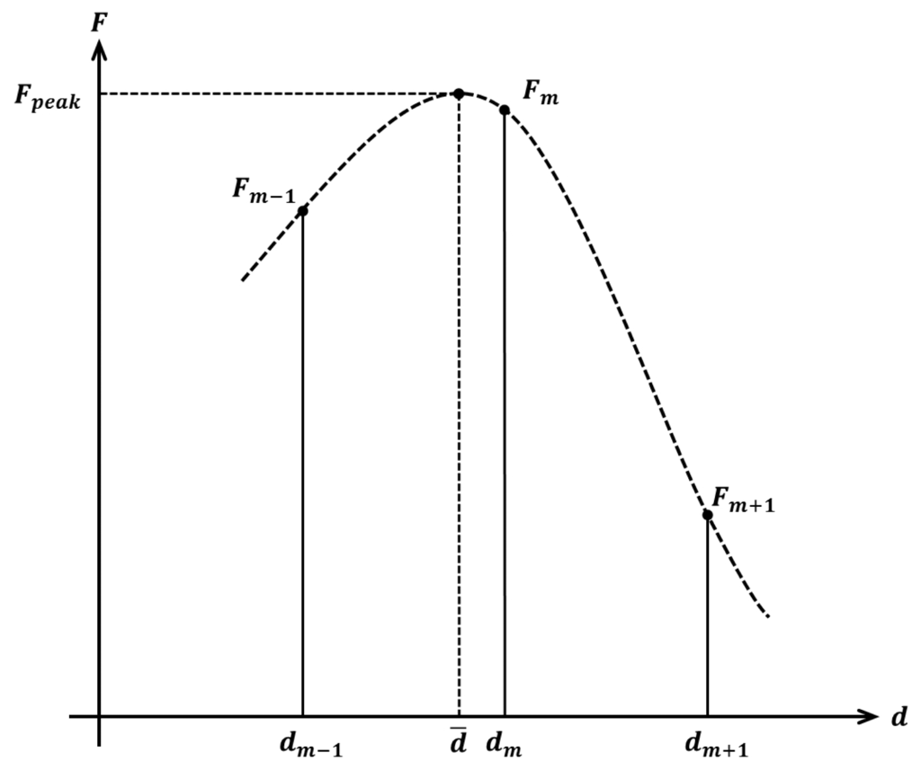 We look for d̄ where the focus value is maximum (Fpeak). Three measures are used : Fm−1, Fm and Fm+1.