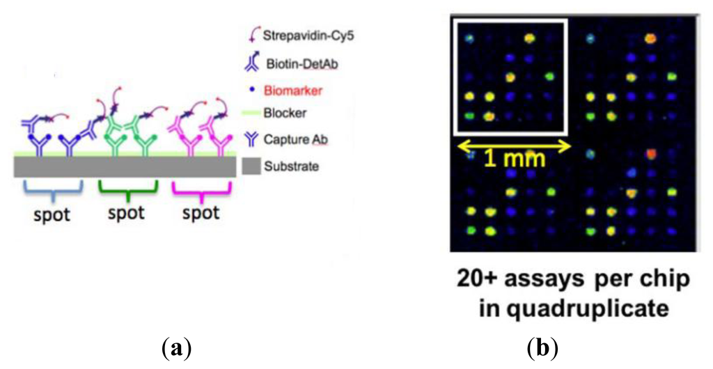- Gonzalez, R.M.; Seurynck-Servoss, S.L.; Crowley, S.A.; Brown, M.; Omenn, G.S.; Hayes, D.F.; Zangar, R.C. Development and validation of sandwich ELISA microarrays with minimal assay interference. J. Proteome Res. 2008, 7, 2406–2414. [Google Scholar]