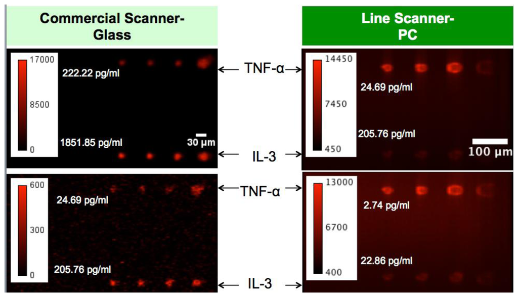 - Chaudhery, V.; Lu, M.; Huang, C.-S.; Polans, J.; Tan, R.; Zangar, R.C.; Cunningham, B.T. Line-scanning detection instrument for photonic crystal enhanced fluorescence. Opt. Lett. 2012. [Google Scholar] [CrossRef]