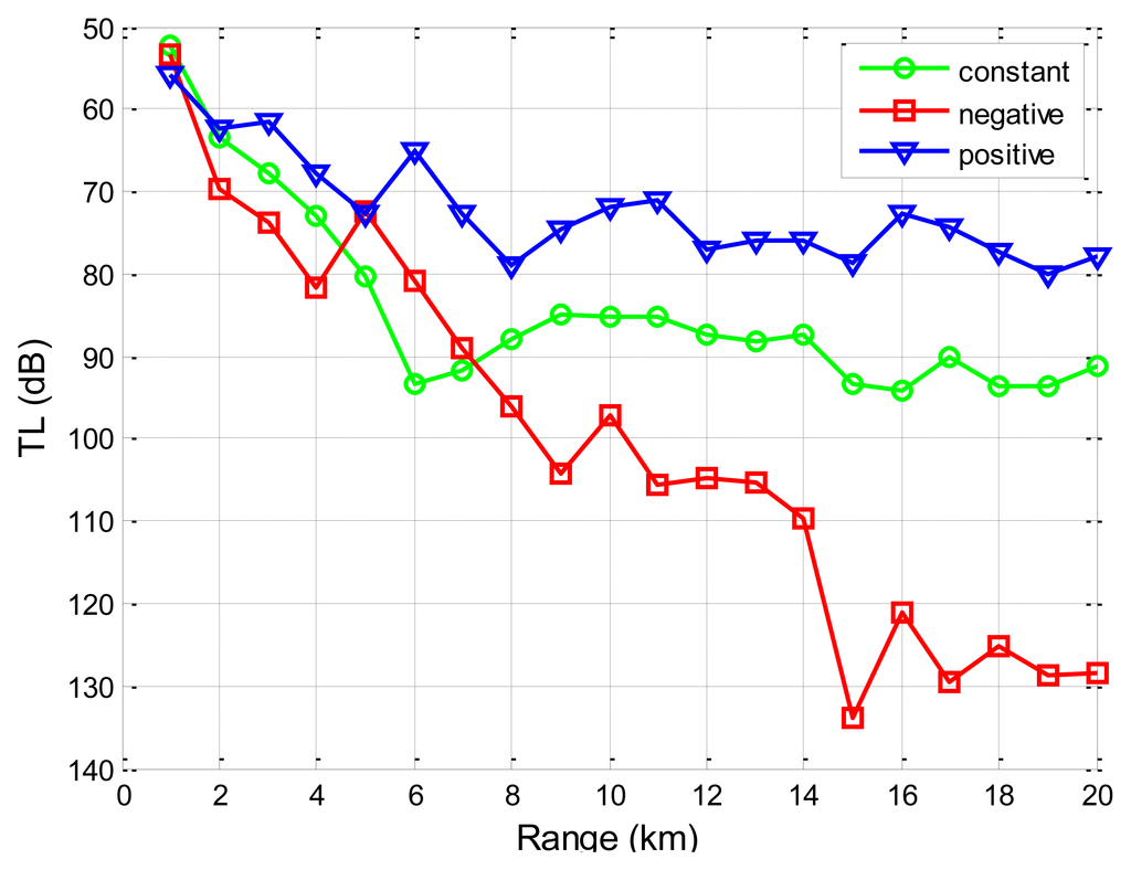 Specifically, if the ocean medium is regarded as a communication channel, the received signal y(t) at the destination is the convolution of an input x(t) with the relevant channel impulse response h(t). The transmission loss, denoted by TL, in dB, can be calculated as: