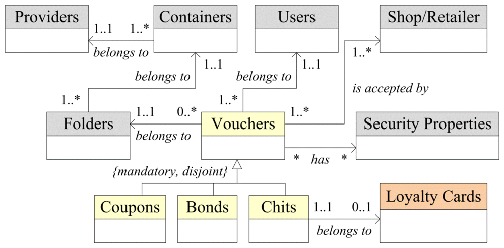 It can be observed that the system considers three types of actors: providers of vouchers, retailers or shops and users or customers. Providers are companies having marketing or promotional vouchers or loyalty card campaigns. Retailers are the stores or shops where customers earn and redeem vouchers and can play the role of providers in some cases, and users are the customers using the application.