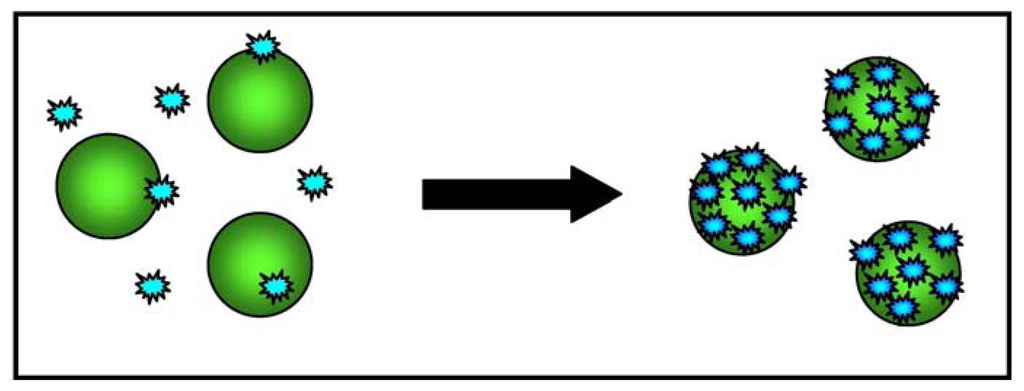 A subsequent study evaluated whether the ACGNP approach can differentiate target cells (CCRF- acute leukemia cells from the CEM cell line) and control cells (Ramos, derived from a patient with Burkitt's lymphoma). To this end, an aptamer sequence with a high degree of affinity and selectivity for CCRF-CEM acute leukemia cells was conjugated to gold nanoparticles, and the absorption spectra of five samples containing different amounts of target and control cells were determined. It was found that the assembly of the ACGNPs around the target cells caused an increase in the absorption and scattering of the solution that was proportional to the number of target cells in the sample. The sample with the largest number of target cells took on a darker colour, whereas the sample with control cells remained colourless, thus allowing the detection of target cells with the naked eye (when there were at least 1000 target cells in the sample). Figure 3 provides a schematic illustration of the ACGNP-based colorimetric assay.