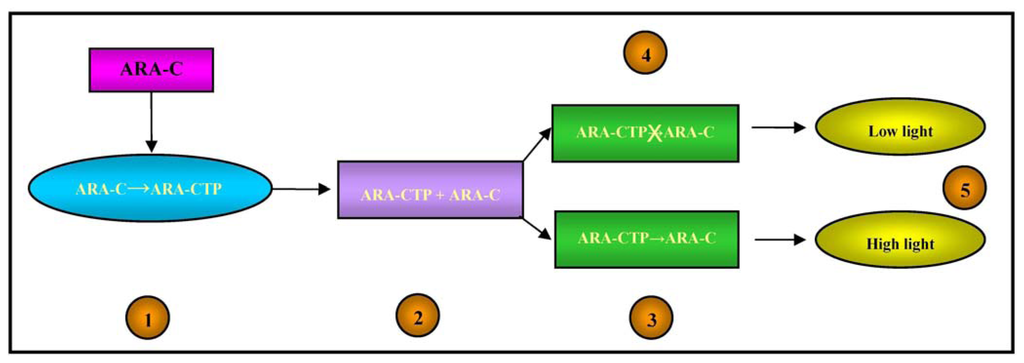 Ara-C (cytosine arabinoside) is a cytotoxic nucleoside analogue that is widely used to treat acute leukemias; however, some patients do not respond or become drug resistant [69], whereas others seem to be very sensitive and may achieve long-term remission at lower drug doses. The absence of a pre-screening test to evaluate the potential response to Ara-C exposes non-responders to possibly inefficacious treatment, and hypersensitive patients to over-treatment [70].