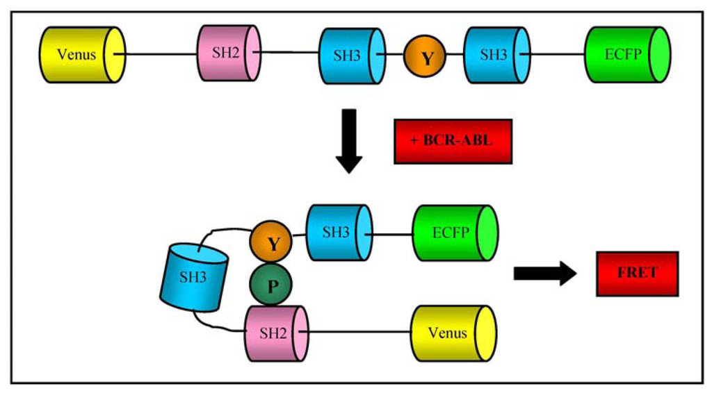 For example, Waterhouse et al. have developed a FRET-based biosensor assay that is capable of detecting Bcr-Abl and epidermal growth factor receptor activity and its inhibition by tyrosine kinase inhibitors in vivo[21]. A FRET-based assay has also been developed to monitor the ligand-dependent interactions of an estrogen receptor isoform in breast cancer cells [22].