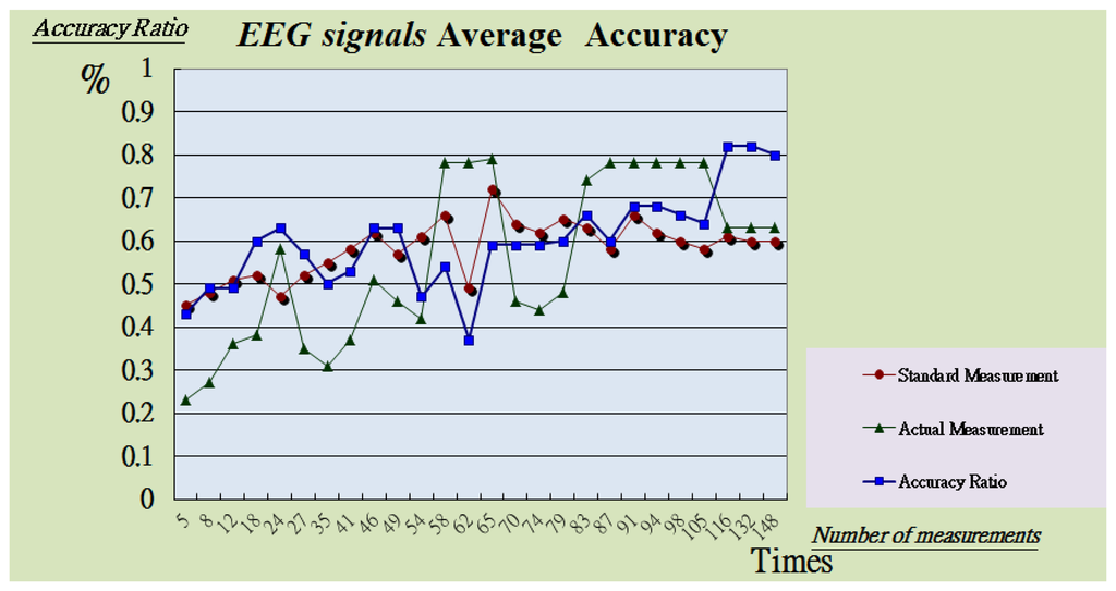 Table 1 compares the existing system in this study in real-time, average distortion test and average sensitivity test. We used the existing BEAM Systems by Frontline Test Equipment Inc. (Charlottesville, VA, USA) and Ke Chuang Technology Inc. (Shenzhen, China) to start four experiments. The first experiment observed the alarm delay time. The second experiment measured brain electrical signals during 20 tests and computed the error ratios (see Figure 13).