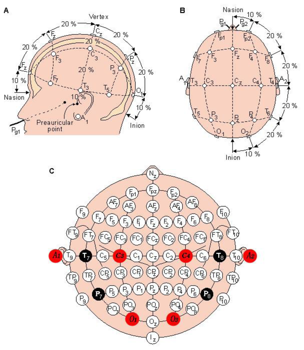 - Klem, G.H.; Lüders, H.O.; Jasper, H.H.; Elger, C. The ten-twenty electrode system of the International Federation. The International Federation of Clinical Neurophysiology. Electroencephalogr. Clin. Neurophysiol. Suppl. 1999, 52, 3–6. [Google Scholar]