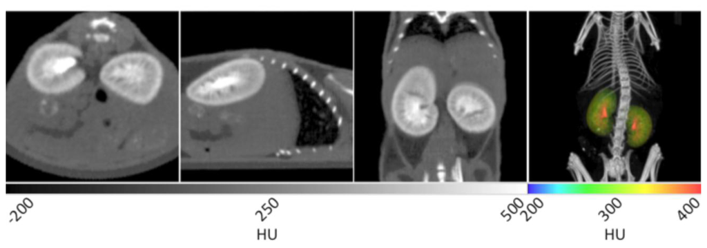 - Almajdub, M.; Magnier, L.; Juillard, L.; Janier, M. Kidney volume quantification using contrast-enhanced in vivo X-ray micro-CT in mice. Contrast Media Mol. Imaging 2008, 3, 120–126. [Google Scholar]