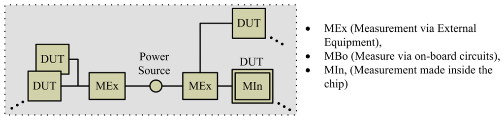 Other external MD alternative could be the setup of a specific measurement system according to the EEA needs, for example: non-invasive, accuracy, cost, etc. making available some separate measures of the computing architecture. This specific hardware system could be deployed introducing additional physical sensors located in the input power lines of any potential DUT of the computing architecture. These solutions can provide a wide range of alternatives, such as the usage of current sensors based on hall-effect providing a non-intrusive solution (see Figure 2(b)).