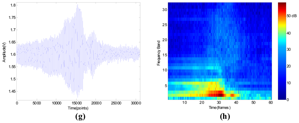 The seismic signal (SS), wavelet packet node energy (WPNE) and wavelet packet manifold (WPM) determined in a certain demonstrative experiment which is conducted in a gravel road are shown in Figure 4, where the length of frame is 512 sample points and 128 overlapping points exist in the adjacent frames.