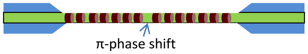 Here we propose and demonstrate a fiber-optic RI sensor based on a chemically-etched π-phase-shifted FBG (πFBG) with compact size and a significantly sharper resonant feature compared to other FBG or FFPI sensors. The structure of the πFBG sensor is schematically shown in Figure 1. Different from a regular FBG consisting of periodic RI modification in the fiber core, a πFBG has a π-phase discontinuity in the center of the grating. For strong gratings, the introduction of the phase discontinuity leads to an extremely narrow notch in the reflection spectrum at the Bragg wavelength given by: