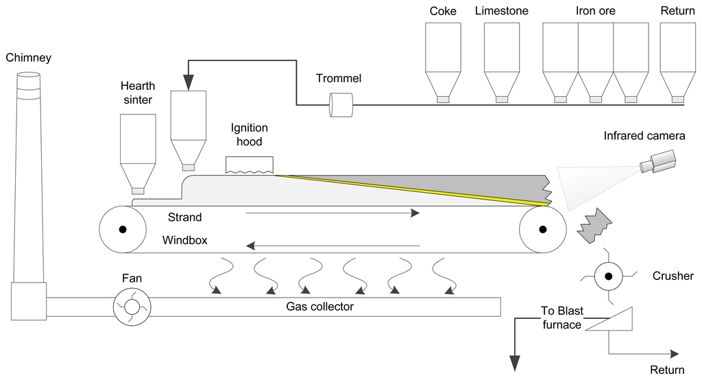 Many different parameters need to be finely tuned in the sintering process. Control is mostly based on models that calculate the inputs of the process depending on predictions. Different techniques are used, including fuzzy logic, neural networks, finite state machines and genetic algorithms [8–13]. All these models require precise feedback to fine-tune the parameters.