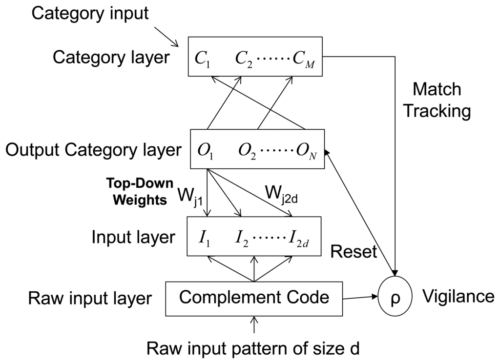 - Carpenter, G.A.; Grossberg, S.; Rosen, D.B. ART2-A: An adaptive resonance algorithm for rapid category learning and recognition. Neural Netw. 1991, 4, 493–504. [Google Scholar]