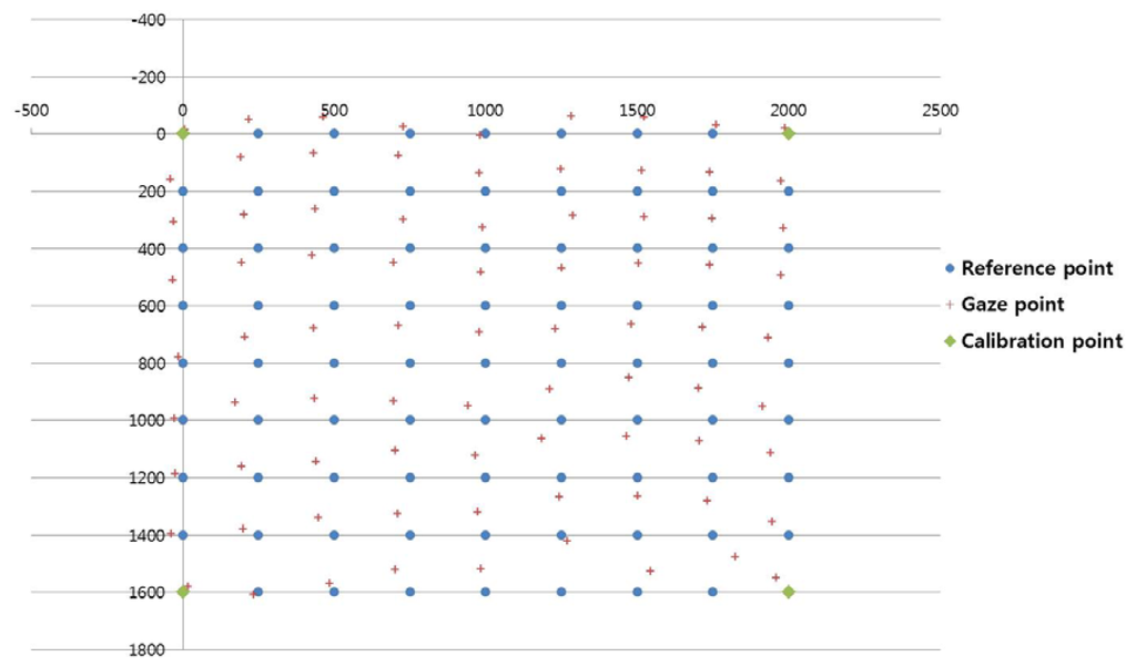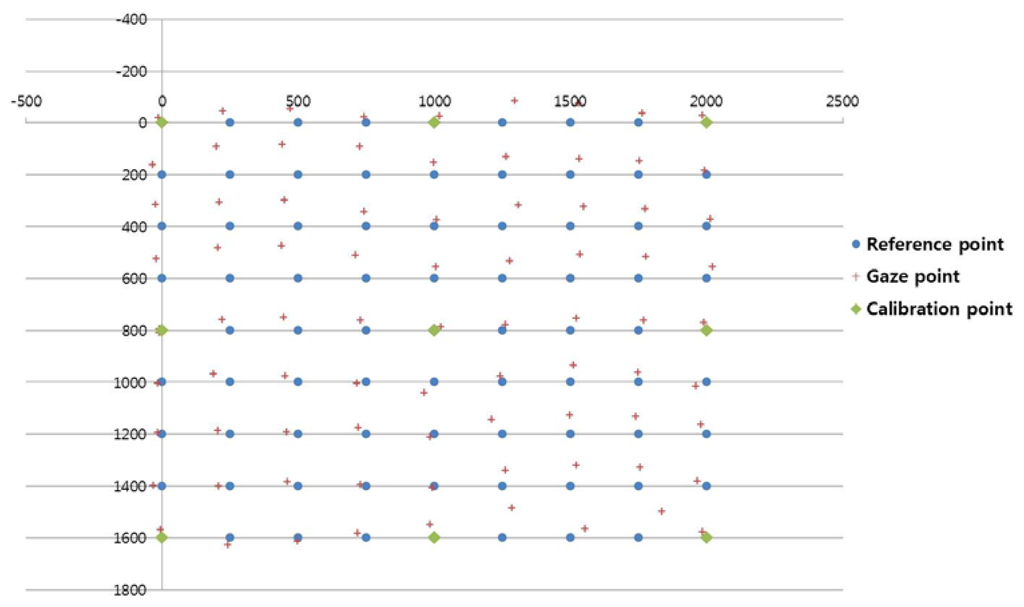 The experiment results showed that the EGD was lowest when a user actually gazed at 15 calibration points, as shown in Figure 12.