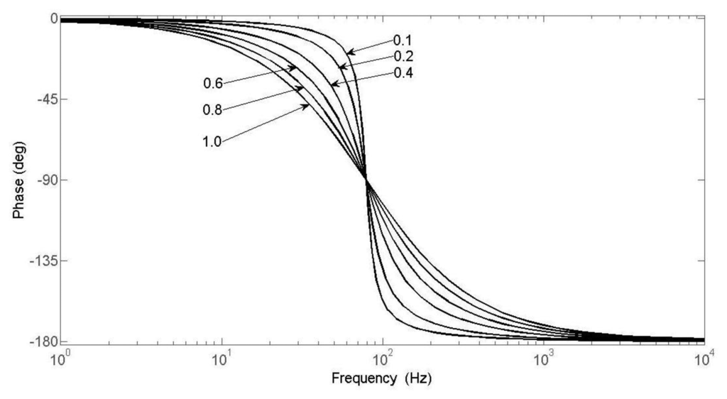 3.2. Phase-Frequency Characteristics of Different Damping Ratios