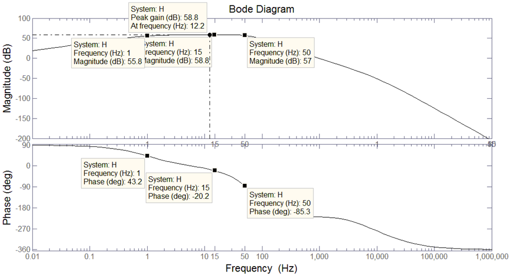Because the gyro's working frequency ranges from 1 Hz to 50 Hz, the band width of the BPF is designed to be 81 Hz. The transfer function for BPF is: