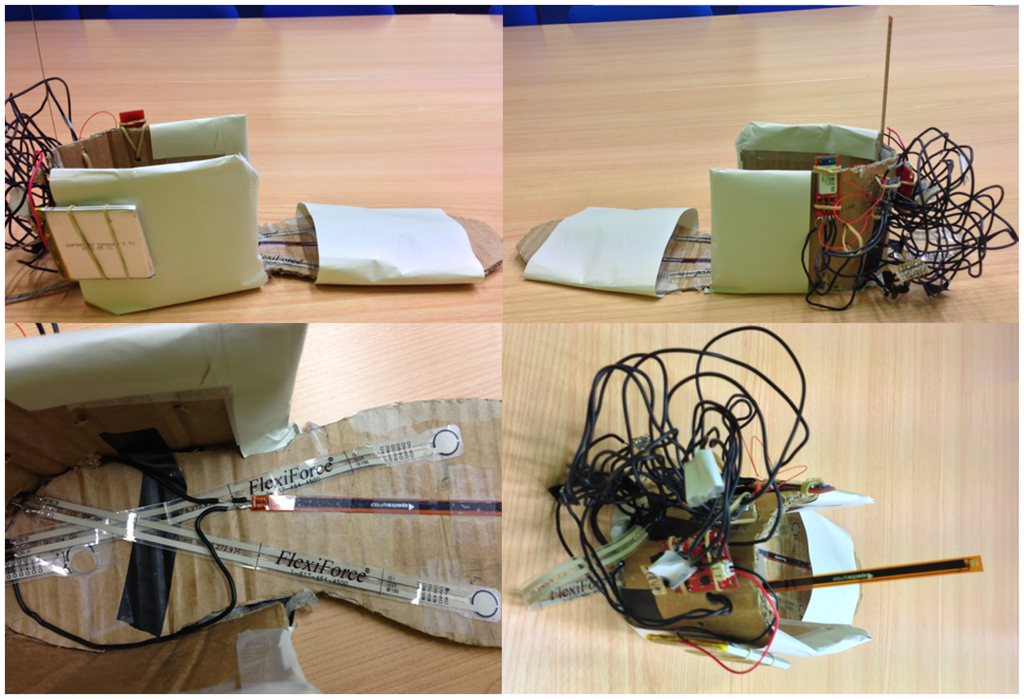 Two kinds of sensors were used for this initial test: pressure sensors and bending sensors. A review of foot plantar pressure measurement systems is described in [17].