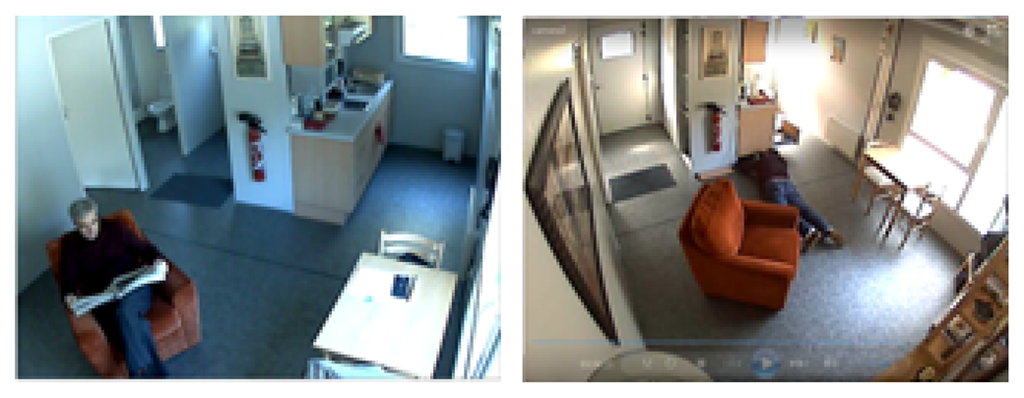 - Vishwakarma, V.; Mandaland, C.; Sural, S. Automatic Detection of Human Fall in Video. Proceedings of the 2nd International Conference on Pattern Recognition and Machine Intelligent, Kolkata, India, 18-22 December; Springer-Verlag: Berlin, Heidelberg, 2007. [Google Scholar]