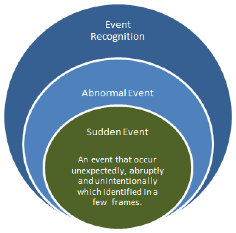The awareness of the need to provide a safe and comfortable living environment has led to a surge of video-based research activity in the surveillance community. The advantage of having a video-based system is the introduction of an autonomous system that reduces the reliance on the human ability to monitor and detect anomalous events. In general, sudden event recognition for visual applications can be divided into two categories, namely, those that involve a human-centered sudden event, a vehicle-centered sudden event and a place-centered one, as explained in the following scenarios.