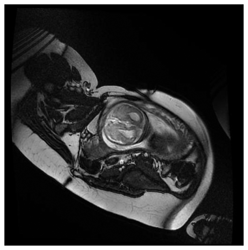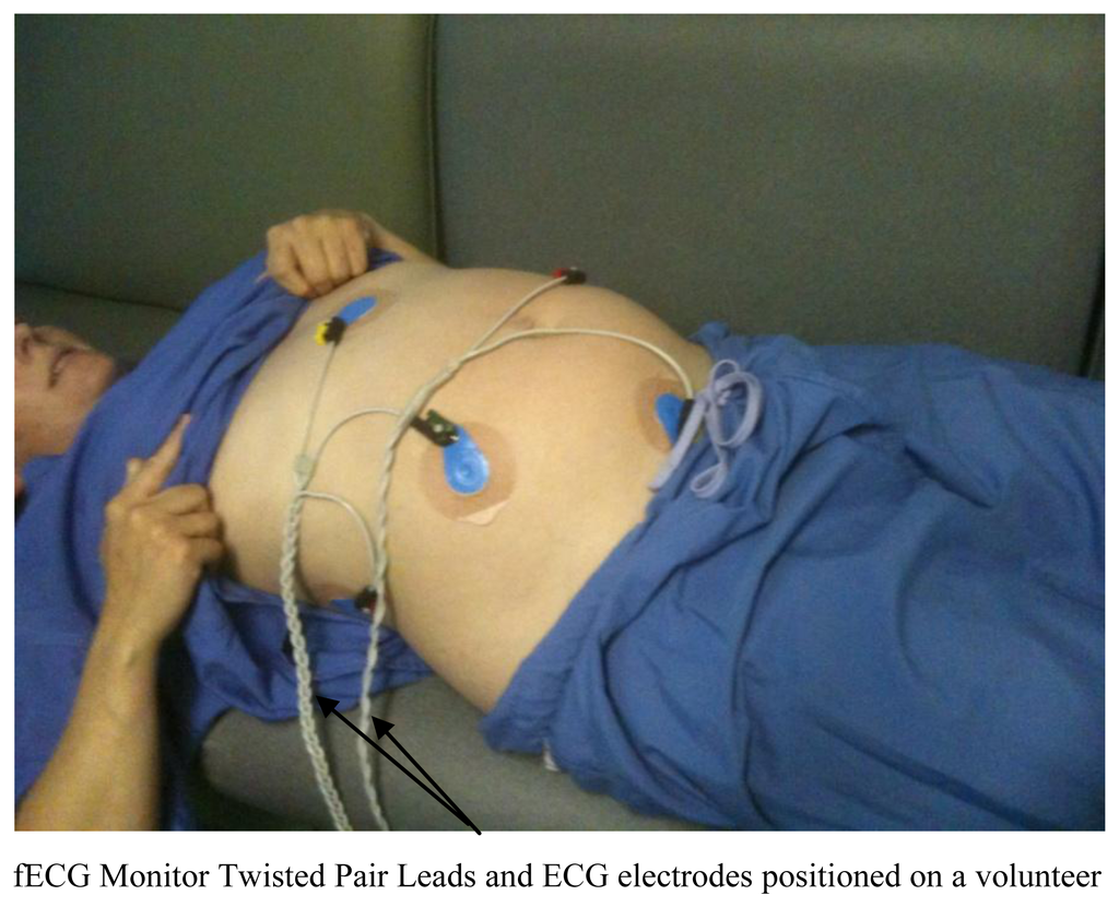 This work was performed with the approval of and under the guidance of the NHS Research Ethics Service (reference 10/H1308). All women provided written informed consent prior to their studies. Pregnant women (n = 3) with known Central Nervous System (CNS) pathology of their foetus coming for a follow up examination (so they already had experience of an MRI examination) were assessed using the fetal ECG system. The leads were attached to five MR compatible electrodes and placed on the lower abdomen close to the anticipated location of the fetal heart prior to all scanning and presence of the fetal trigger pulse checked after patient positioning in the magnet. Images were acquired using a 1.5 T HDx MR System (GE Healthcare, Milwaukee, WI, USA) using all the sequences included in our standard in-utero CNS imaging protocol plus an additional fECG gated cardiac cine sequence at the end of the examination using the same geometry as planned for the CNS examination to comply with granted ethical permission. Typical overall in magnet time was 30 min.