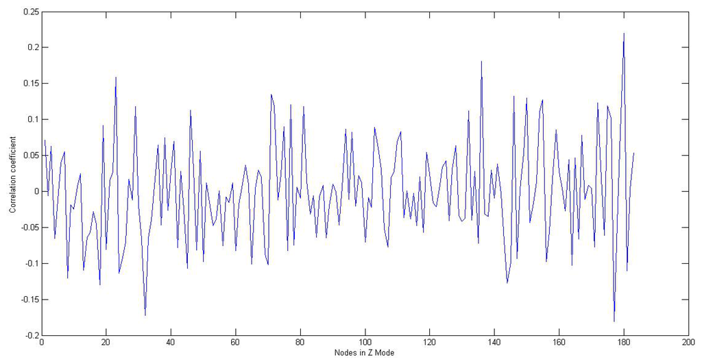 From Figure 10, we can observe that the correlation coefficient fluctuates a great deal with the change of the relative position between the node in Not Z-MODE and the nodes in Z-MODE. Although this observation cannot establish cause and effect, it strongly suggests that the size of interference is largely related to relative position. Additionally, one of the plausible interpretations of this observation, considering the field of a manufacturing workshop shown in Figure 1, is that the whole production process can be decomposed into several smaller, repeated processes, where interference from the environment in subprocess I is approximately parallel to subprocess J. This observation lends significant weight to the argument that it is reasonable for the value of an arbitrary node to be modified through a two-step process: