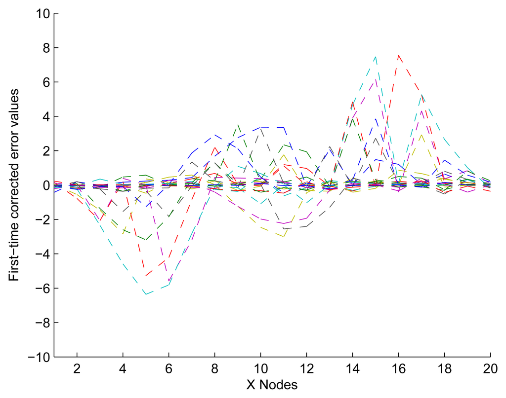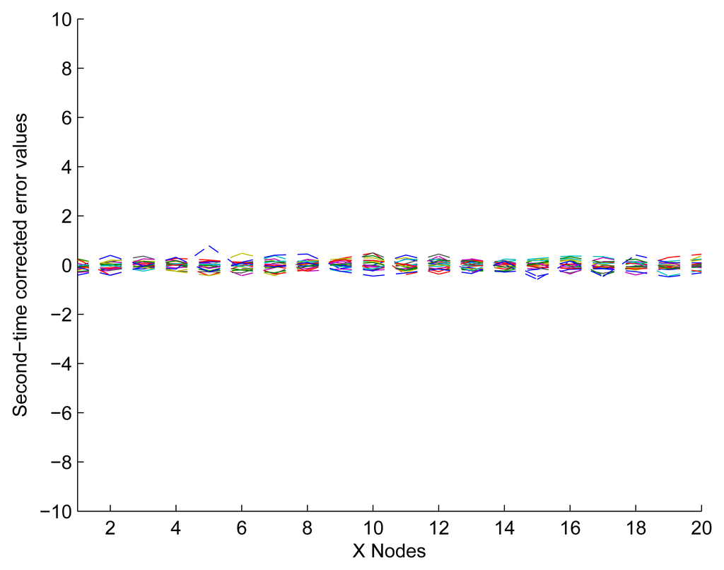 In Figure 12, it shows that the experimental data have been fitted to ideally respond after modifying the nodes in Not Z-MODE. Compared with Figure 9b, the optimized method of distance measurement with the capability of NEC performs excellently, since it takes full advantage of the correlation coefficient among neighbor sensors. So far, we have described the process of one application to the UDS. However, determining a reasonable number of iterations is of great importance.