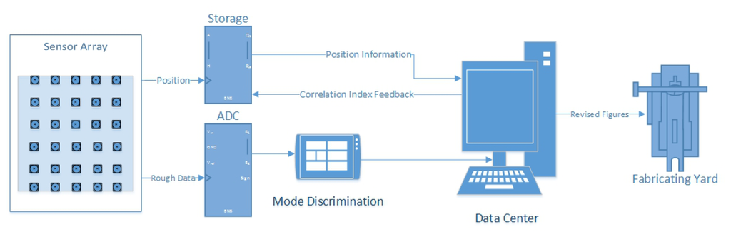 As mentioned above, in some of modern industrial cases, these devices have formed a network with wired or wireless methods passing data to a DC. Furthermore, many data mining and mathematical and statistical algorithms have been used for data analysis. A model using data mining algorithms which then processes data based on the same model has been widely employed in industrial fields to gain accurate measurements. In [12], it uses the statistics of the relation of selection and theoretical variances, the simultaneous operative testing of mathematical expectation, and the variance of errors in the one-dimensional measurements. Then in [13], an approach to characterize the model prediction errors using a Gaussian mixture model is proposed, which mainly consists of choosing the relevant variables to form the error data, optimizing the number of Gaussian components required for the error data modeling, and fitting the Gaussian mixture parameters with an expectation-maximization algorithm. In [14], it proposes a two-mode adaptive fuzzy controller with an approximation error estimator. In the learning mode, the controller employs some modified adaptive laws to tune the fuzzy system parameters and an approximation error estimator to compensate for the inherent approximation error; in the operating mode, the fuzzy system parameters are fixed—only the estimator is updated online. These methods have been effectively used for data analysis, so they can also be incorporated into networked UDS systems for error correction. In general terms, previous studies have suggested that using methods that focus on optimization of a single UDS device can improve the performance of distance measurement to some extent, however, contradictions among the accuracy, hardware complexity, data update rate and measurable range still exist.