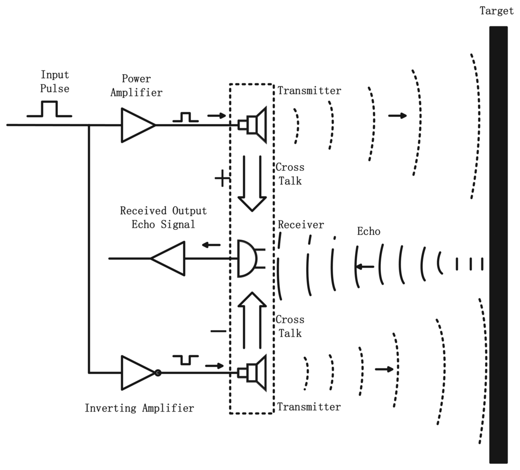 The most basic method of UDS is using a simple pulse echo sensor, which acts as both transmitter and receiver. An echo is detected by the receiver after the transmitted pulse propagates outwards. The distance between the transmitter and receiver is obtained by counting the elapsed time from the start of the transmission to the end of the receipt, defined as the time-of-flight (TOF) [7]. Given that ultrasonic speed is a fixed value in a certain environment, the distance can be calculated by the following Equation: