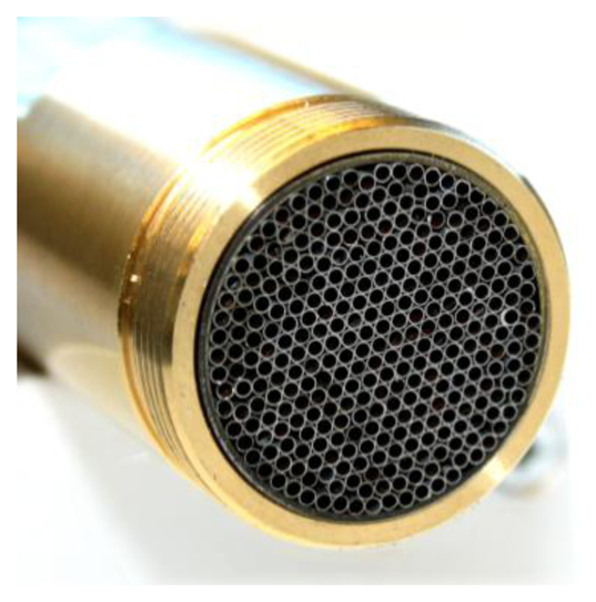 Reduction of the turbulent layer on the wall was tried by a laminar flow element (LFE) which removes turbulences at the inlet. The laminar flow element consists of a set of 1 mm cannulas cut by wire EDM (electrical discharge machining) as depicted in Figure 10.