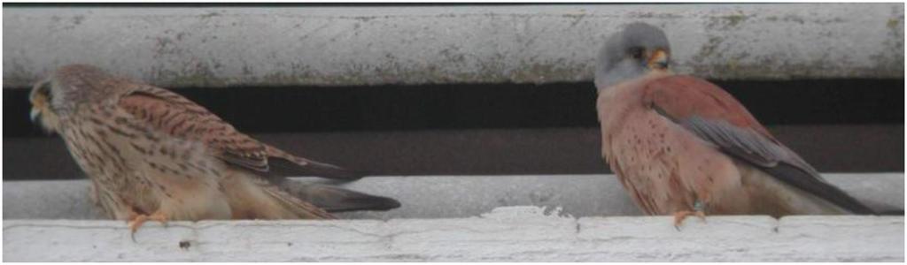 In 2011, we started a new collaboration with the DBS on another monitoring sensor network, called HORUS, which is a project that is focused on the observation of behavior in endangered species. Specifically, this project is focused on the phonological monitoring of the Lesser Kestrel (Falco naumanni, Figure 15), an endangered small migratory falcon. This species was previously considered to be the most abundant raptor in Europe [21], but then, it became extinct in several countries (e.g., Austria, Hungary, and Poland) and nearly disappeared in others [22] (e.g., France, Portugal, and Bulgaria). Within the western Palearctic, the area with the Mediterranean climate of Spain constitutes a stronghold of the Lesser Kestrel [23]. Nevertheless, the Spanish population has also suffered a precipitous decline in recent years, dropping from an estimated 20,000–50,000 pairs in the 1970s to some 4,000–5,000 breeding pairs in 1988 [24]. This decline has been caused by a reduction in both the extent and the quality of foraging habitats [25].