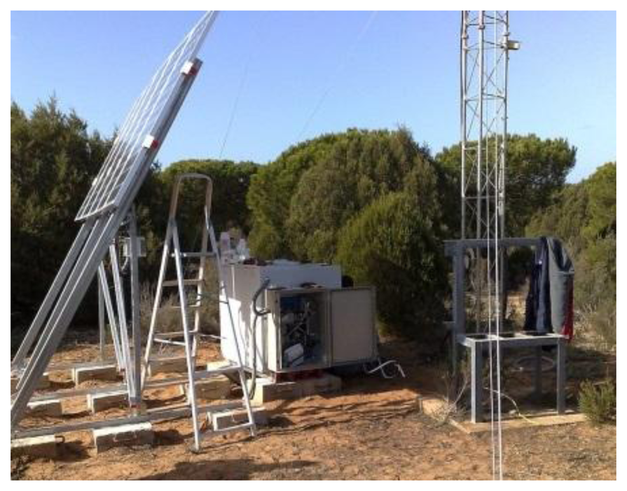 To allow for the integration of sensors and to facilitate the retrieval of information, some remote communication towers have been currently deployed in the Doñana Biological Reserve (Figure 2). Thus far, there are six remote communication towers that are spread all over the park. These communication towers use a WiMAX connection to allow communication with a central server.