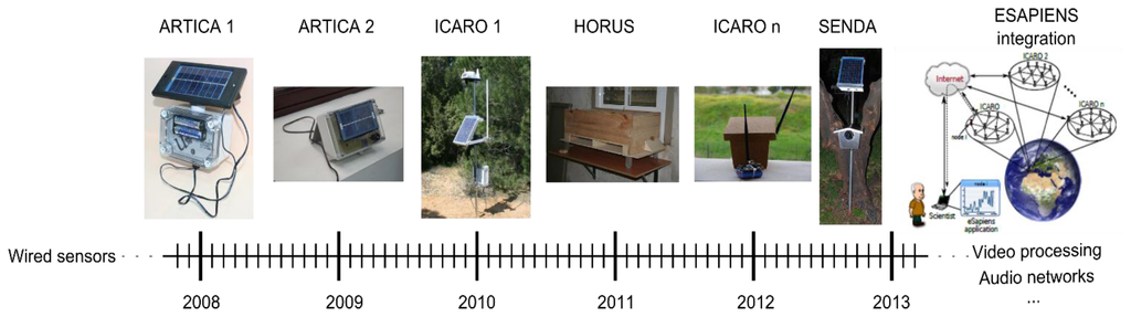According to the aforementioned information, Figure 24 depicts the chronological evolution of the designed ambient monitoring networks. A comparison of the specification of the different deployed networks is summarized in Table 1.