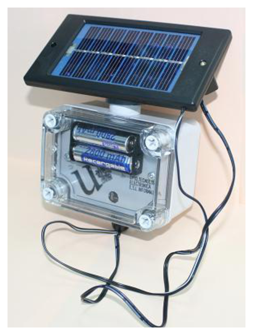 ARTICA 1 was our initial prototype. It was designed in 2008, and it was based on a TelosB platform. Figure 3 shows a node of the ARTICA 1 network. These nodes are powered by small solar panels and are designed to obtain the following measurements: