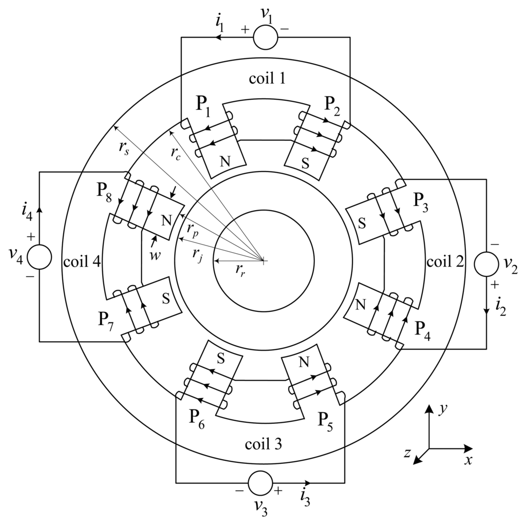 - Ranft, E.O.; van Schoor, G.; du Rand, C.P. Self-sensing for electromagnetic actuators. Part I: A coupled reluctance network model approach. Sens. Actuators A 2011, 172, 400–409. [Google Scholar]