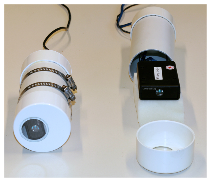 The SQM is not weatherproof, and its response can be affected if water enters the device (personal communication from Unihedron). It must therefore be protected from moisture by installing it in a housing, and in our experience, most users have chosen to use the housing provided by the manufacturer shown in Figure 1. The SQM housing not only protects the device from the environment but also traps the heat generated by the operation of the device. This heating is negligible in the case of SQMs connected via USB (SQM-LU), but significant in the case of Ethernet connected SQMs (SQM-LE), which tend to operate at slightly warmer temperatures. To avoid the possibility of Ethernet heating interfering with the tests, in this paper only the USB version of the SQM (SQM-LU) is studied.