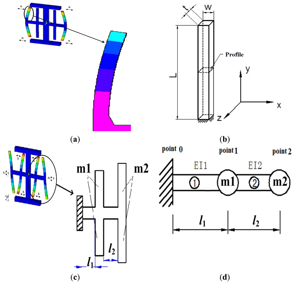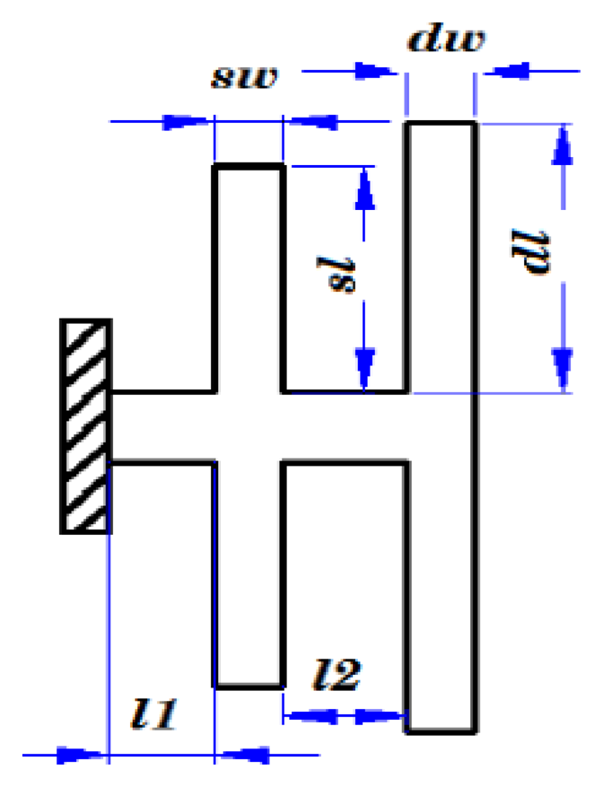 The most basic design goal is to obtain the appropriate resonant frequency; One beam of the drive mode is shown in Figure 4a and a simplified driving fork is shown in Figure 4b. The modal coordinate Equation is expressed as [10]: