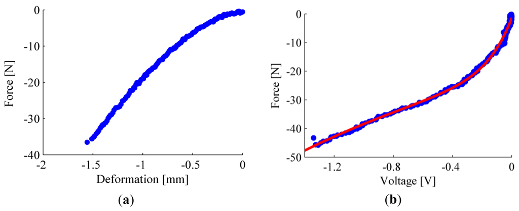 voltage-to-force conversion of the output signal from each sensitive element based on the characterization curve reported in the next sub-section;