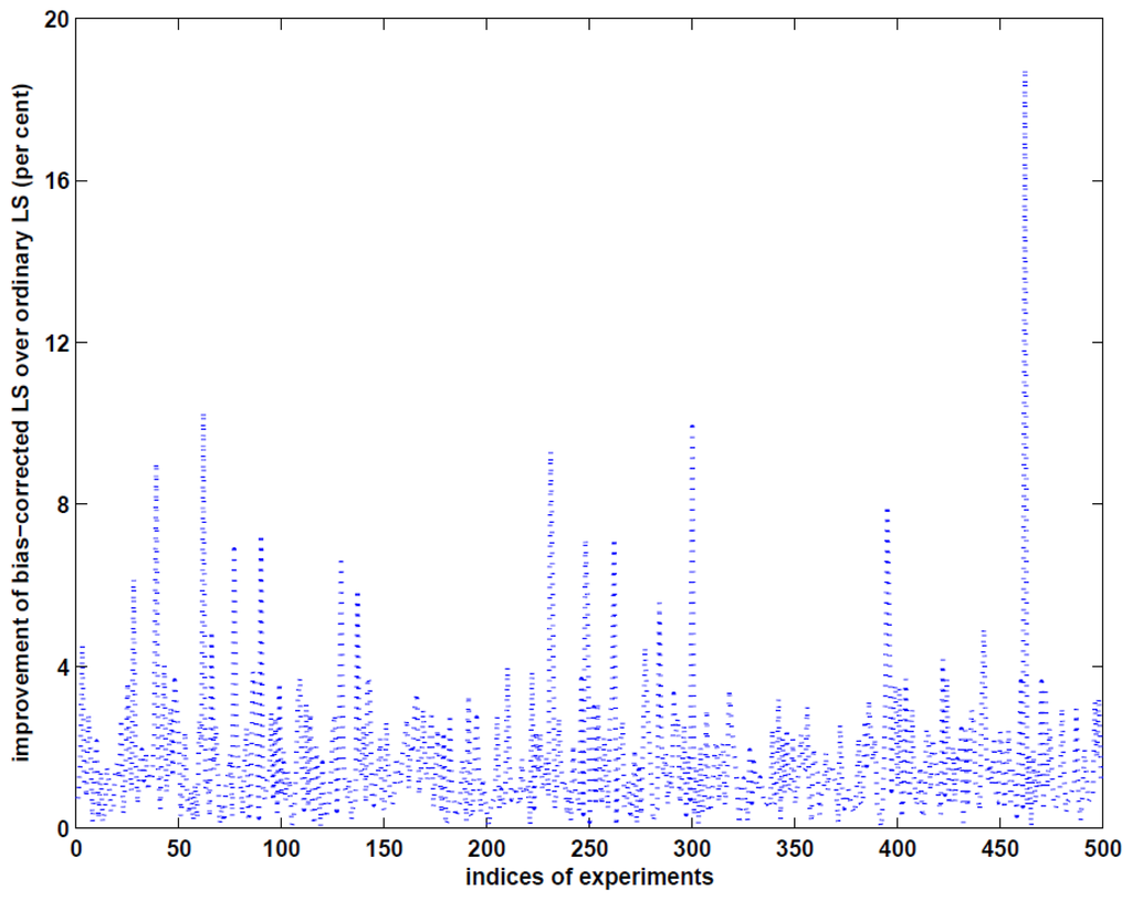- Xu, P.L.; Shimada, S. Least squares parameter estimation in multiplicative noise models. Commun. Stat. 2000, B29, 83–96. [Google Scholar]