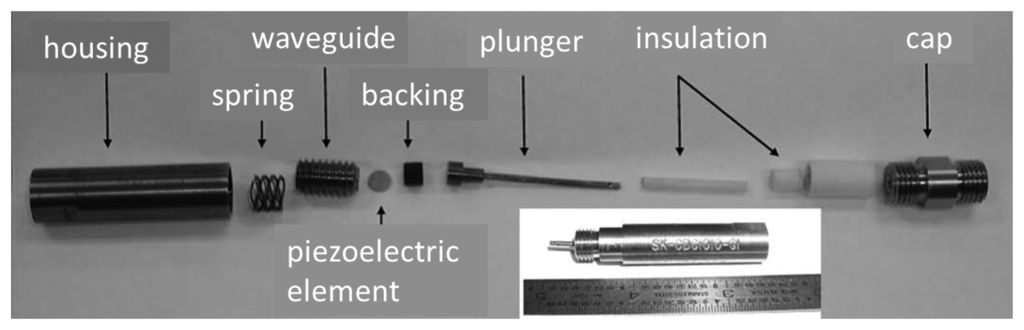 - Kažys, R.; Voleišis, A.; Voleišienė, B. High-temperature ultrasonic transducers: Review. Ultragarsas 2008, 63, 7–17. [Google Scholar]