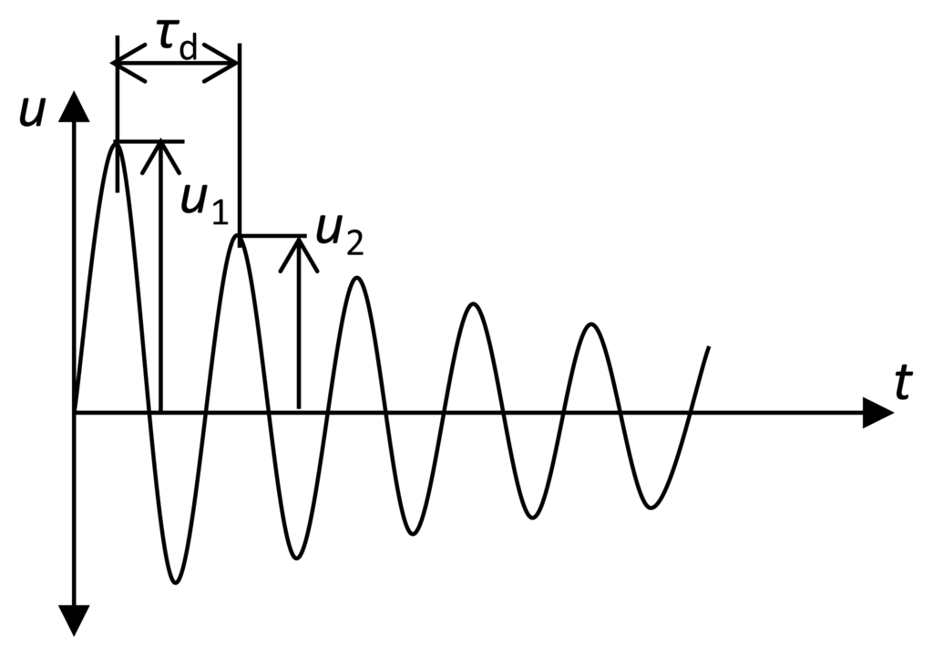 The damping coefficient c is measured experimentally, firstly by observing the rate of decay ξ under free vibration (see Figure 14) and by using the logarithmic decrement formula [41]: