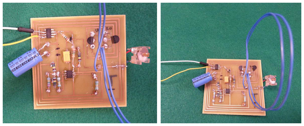 When comparing the energy generated per one cycle (Hout) and (Pavg) in each cantilever under ±40 μm amplitude of excitation, although design B has the maximum power output among the three designs, it can be seen that there is a dramatic increase in the device efficiency in design C. That is due to the different frequency of oscillation and therefore the time spent to generate that amount of energy. This makes design C the most suitable design among the three studied designs for energy harvesting purposes. The following section presents the integration of the optimized vibration based energy harvester into a developed capacitive sensor read-out circuit designed by the author.