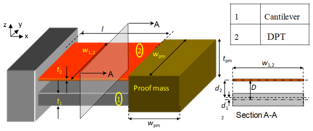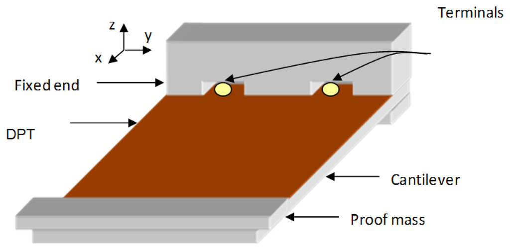 The next section presents the development of a high power density energy harvester through modifying the design of the cantilever that holds the DPT transducer as shown in Figure 7.