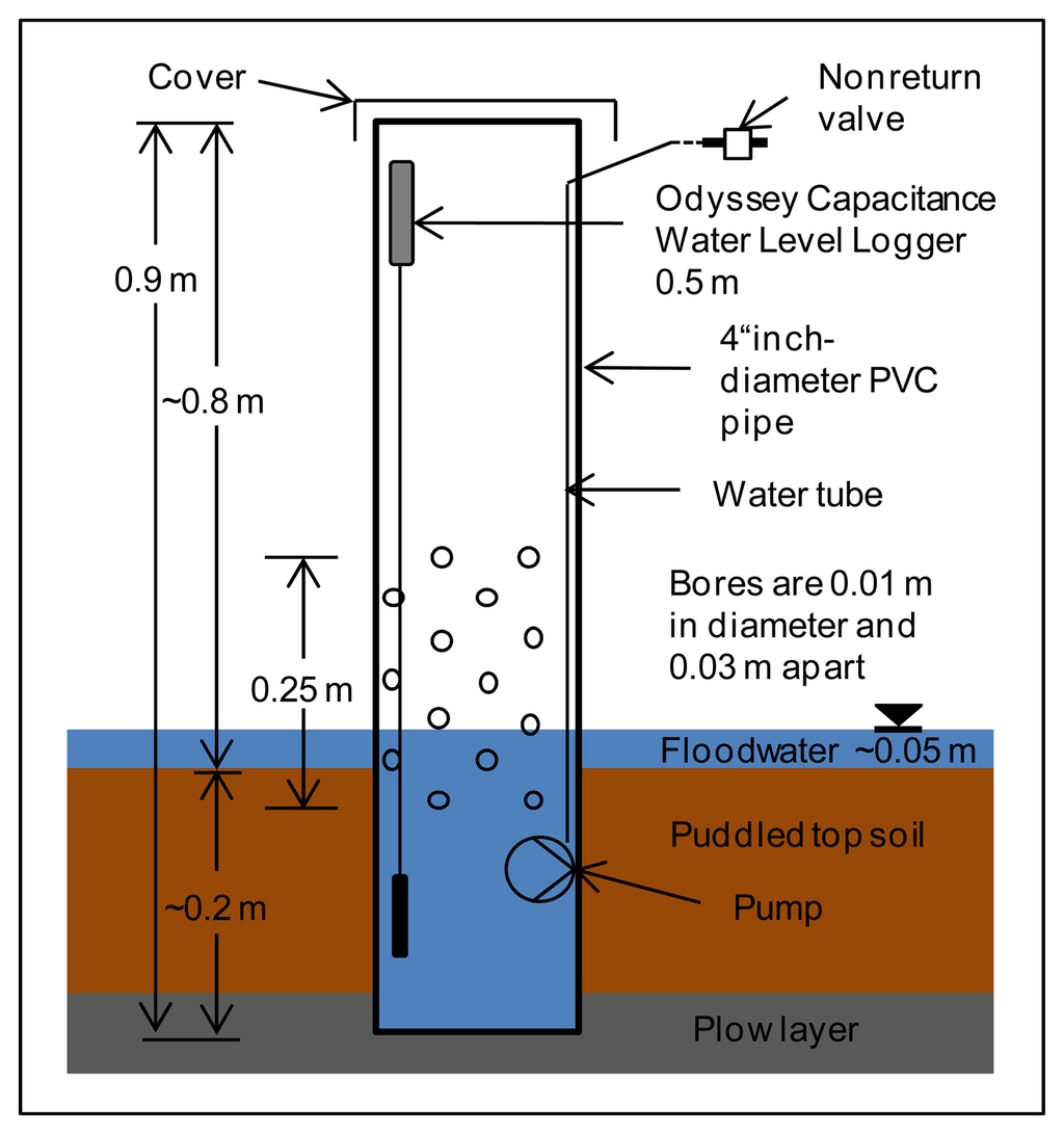 This work has been generously funded as part of the ICON consortium (Introducing Non-Flooded Crops in Rice-Dominated Landscapes: Impact on Carbon, Nitrogen and Water Cycles-DFG-Research Unit FOR1701, subproject 7: Monitoring and modeling of water and water-related nutrient fluxes in rice-based cropping systems, BR2238/9-1). We thank the International Rice Research Institute and Reiner Wassmann for providing research space and support during system set-up and subsequent monitoring. Thanks also to Philipp Parker for proof reading of a former version of this paper.